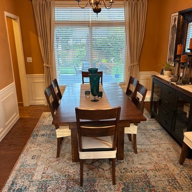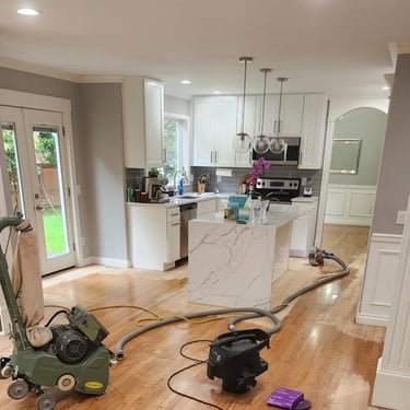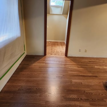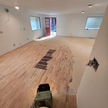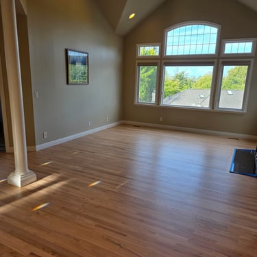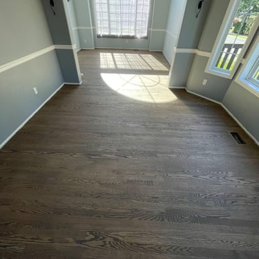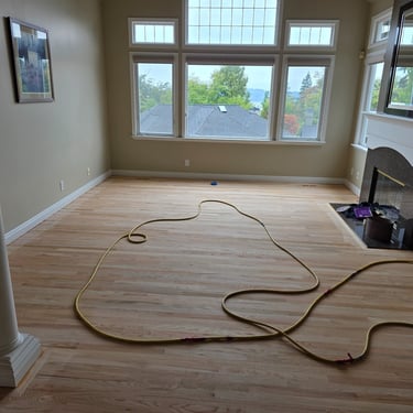 Elevate your home with our expert hardwood floor sanding, staining, and finishing services, proudly serving the Redmond, area. We meticulously sand away imperfections, apply custom stains to enhance the wood’s natural beauty, and finish with premium options like Swedish Finish or eco-friendly, water-based, non-toxic coatings, as seen in this stunning dining room.