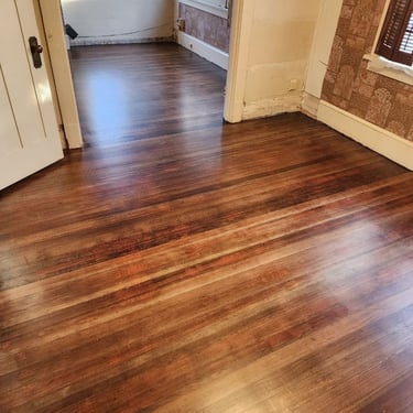 We ran into a surprise when the refrigerator was pulled out. The water line had been leaking and rot and fungus had set in right to the joist. It was a mess but Alex worked overtime to get the job done. He didn't over charge us for the expected repair. In fact he got the whole 900 square feet of floor done on time. We are very happy our floors." -